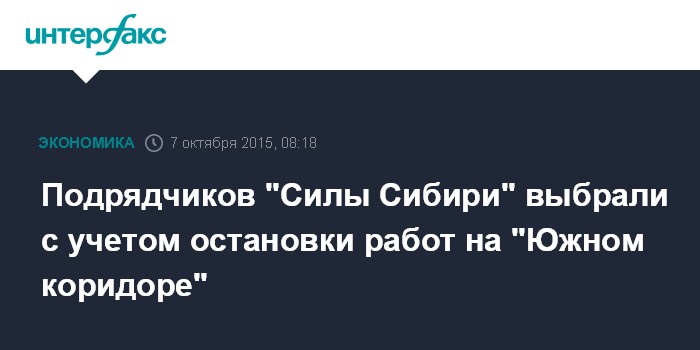 Подрядчиков "Силы Сибири" выбрали с учетом остановки работ на "Южном коридоре"