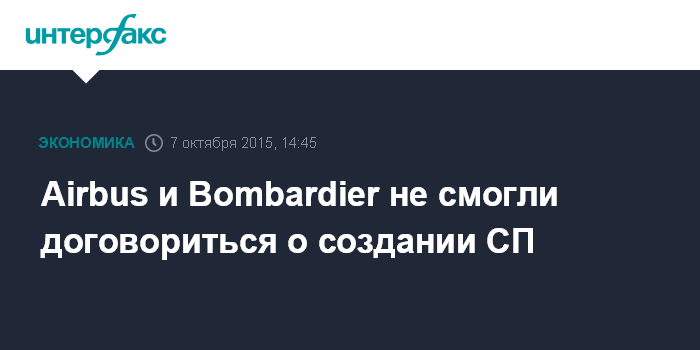 Москва. 7 октября. INTERFAX.RU - Переговоры канадской Bombardier и европейского аэрокосмического концерна Airbus о создании совместного предприятия для производства самолетов Bombardier C Series ни к чему не привели, пишет Financial Times.