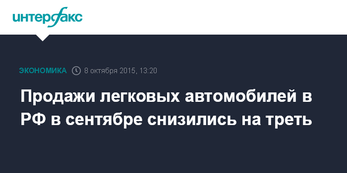 Москва. 8 октября. INTERFAX.RU – Продажи легковых автомобилей и LCV в России в сентябре 2015 года снизились на 28,6% по сравнению с сентябрем прошлого года, до 140,867 тыс. машин, сообщил комитет автопроизводителей Ассоциации европейского бизнеса (АЕБ).