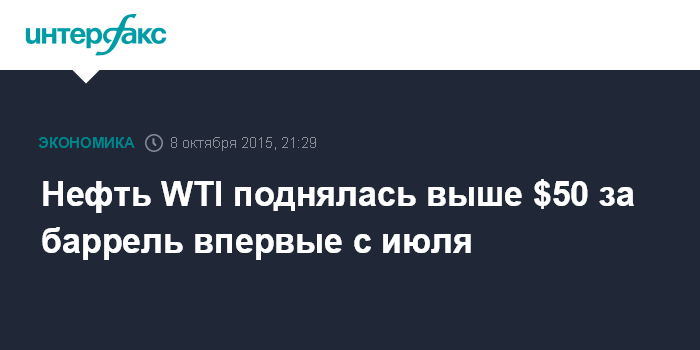 Нефть WTI поднялась выше $50 за баррель впервые с июля