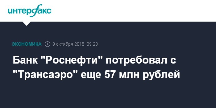 Банк "Роснефти" потребовал с "Трансаэро" еще 57 млн рублей
