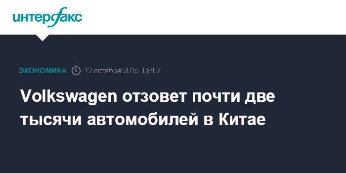Volkswagen отзовет почти две тысячи автомобилей в Китае