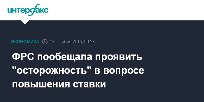 Москва. 12 октября. INTERFAX.RU - Федеральная резервная система (ФРС) осторожно подходит к обсуждению вопроса о возможности повышения базовой процентной ставки, принимая во внимание события за пределами США, а также возможные последствия подъема ставки для emerging markets и остального мира.