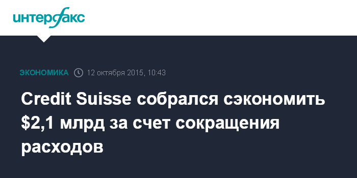 Москва. 12 октября. INTERFAX.RU – Credit Suisse Group подготовил план сокращения издержек на 7-10%, реализация которого позволит банку ежегодно экономить на расходах порядка 2 млрд швейцарских франков ($2,1 млрд), сообщает газета Schweiz am Sonntag со ссылкой на руководителей ряда подразделений банка.
