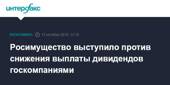 Росимущество выступило против снижения выплаты дивидендов госкомпаниями