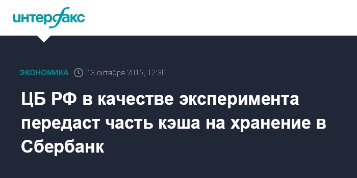 ЦБ РФ в качестве эксперимента передаст часть кэша на хранение в Сбербанк