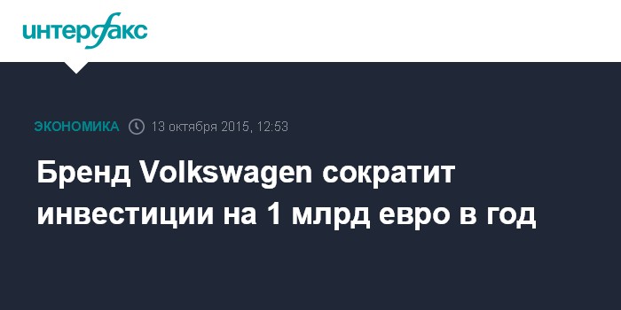 Москва. 13 октября. INTERFAX.RU – Подразделение концерна Volkswagen, выпускающее автомобили под одноименным брендом, сократит инвестиции на 1 млрд евро в год и сосредоточится на экологически чистых технологиях, говорится в пресс-релизе компании.