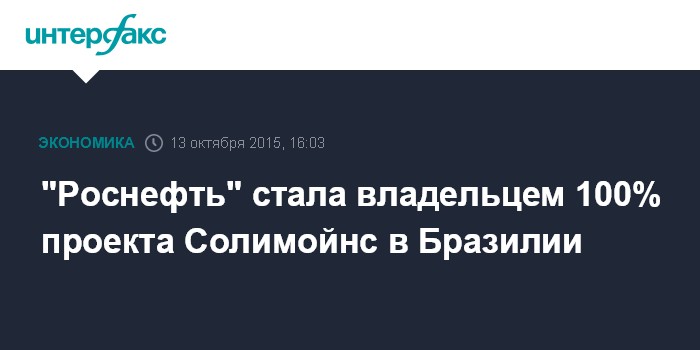 "Роснефть" стала владельцем 100% проекта Солимойнс в Бразилии