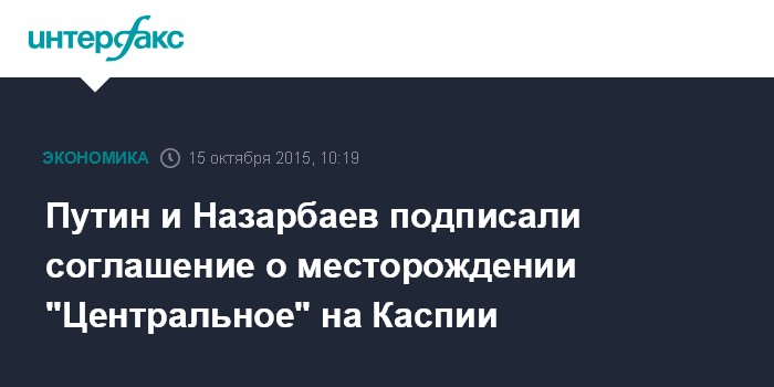 Москва. 15 октября. INTERFAX.RU – Президенты России и Казахстана Владимир Путин и Нурсултан Назарбаев подписали протокол, который вносит изменения в соглашение о разграничении дна северной части Каспийского моря в целях осуществления суверенных прав на недропользование от 6 июля 1998 года.