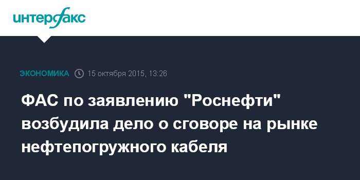 ФАС по заявлению "Роснефти" возбудила дело о сговоре на рынке нефтепогружного кабеля