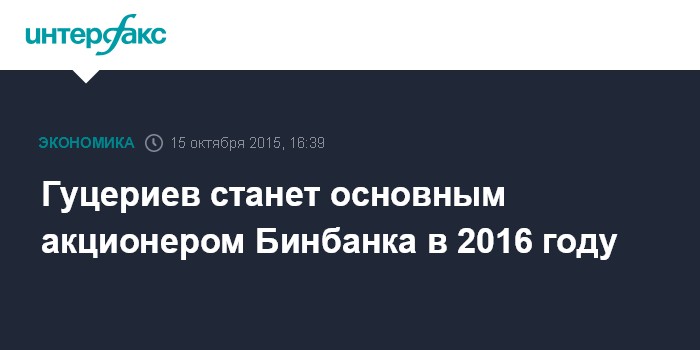 Гуцериев станет основным акционером Бинбанка в 2016 году