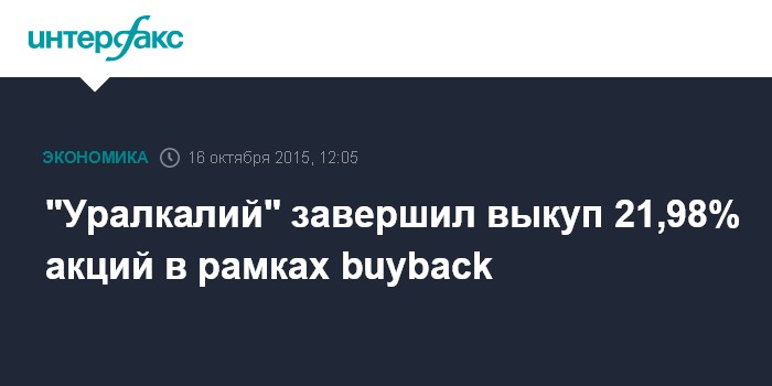 "Уралкалий" завершил выкуп 21,98% акций в рамках buyback