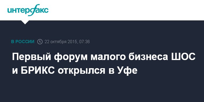 Москва. 22 октября. INTERFAX.RU - Первый форум малого бизнеса регионов стран-участниц ШОС и БРИКС проходит в Уфе, передает корреспондент "Интерфакса" с церемонии открытия.