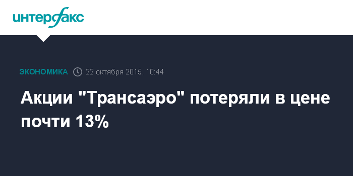 Акции "Трансаэро" потеряли в цене почти 13%