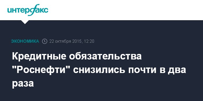 Москва. 22 октября. INTERFAX.RU - Обязательства по кредитам "Роснефти" снизились на конец сентября до $27,2 млрд, сообщил президент "Роснефти" Игорь Сечин на четвертом Евразийском форуме в Вероне.
