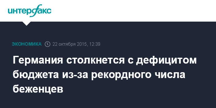 Москва. 22 октября. INTERFAX.RU - Кризис, связанный с притоком рекордного количества беженцев, приведет к небольшому дефициту бюджета ФРГ в 2016 году, прогнозирует министерство финансов страны. При этом ранее ожидалось положительное сальдо.