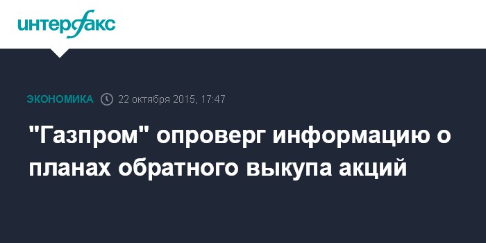 Москва. 22 октября. INTERFAX.RU - Руководство "Газпрома" опровергло информацию о планах провести обратный выкуп акций с рынка.