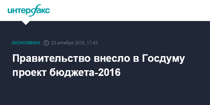 Правительство внесло в Госдуму проект бюджета-2016