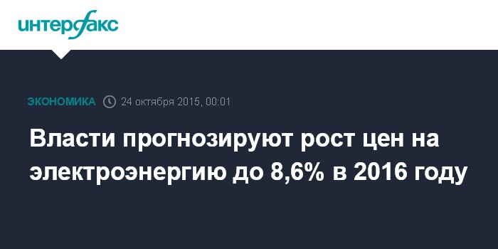 Власти прогнозируют рост цен на электроэнергию до 8,6% в 2016 году