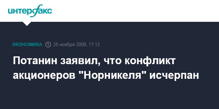 Потанин заявил, что конфликт акционеров "Норникеля" исчерпан