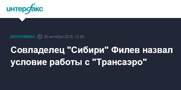 Совладелец "Сибири" Филев назвал условие работы с "Трансаэро"
