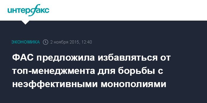Москва. 2 ноября. INTERFAX.RU – Федеральная антимонопольная служба предлагает рассмотреть возможность отставки топ-менеджмента естественных монополий в случае экономической неэффективности их работы, заявил замглавы ФАС Сергей Пузыревский.