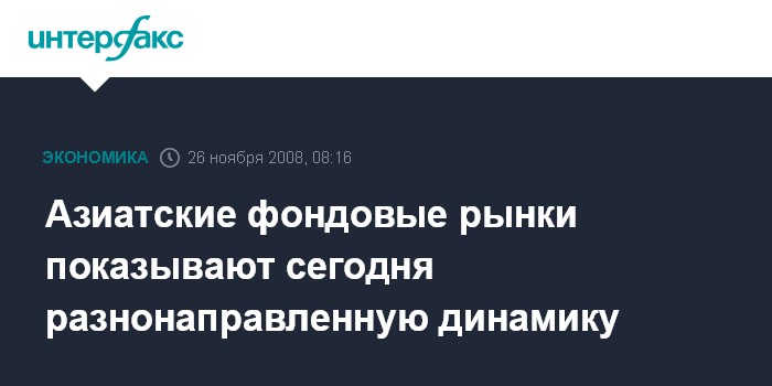 Москва. 26 ноября. INTERFAX.RU - Фондовые площадки Азиатско-Тихоокеанского региона показывают в среду разнонаправленную динамику: акции автопроизводителей дешевеют, котировки финансовых компаний идут вверх, сообщает агентство Bloomberg.