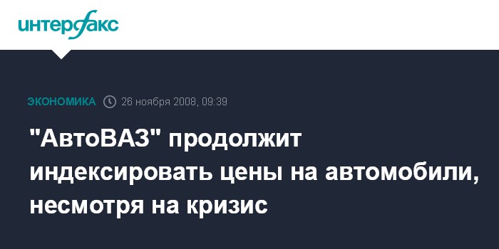 Москва. 26 ноября. INTERFAX.RU - Крупнейший российский производитель легковых автомобилей "АвтоВАЗ" продолжит индексировать цены на свою продукцию, несмотря на финансово-экономический кризис.
