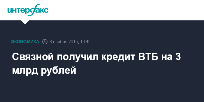 Связной получил кредит ВТБ на 3 млрд рублей