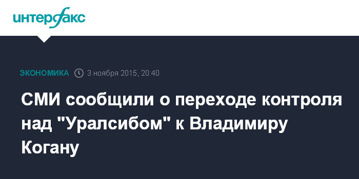 Москва. 3 ноября. INTERFAX.RU - Контроль над банком "Уралсиб" перейдет к Владимиру Когану, сообщает РБК со ссылкой на несколько неназванных источников.