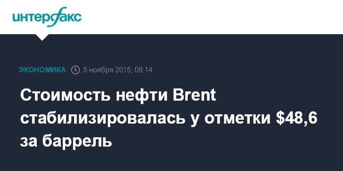 Стоимость нефти Brent стабилизировалась у отметки $48,6 за баррель