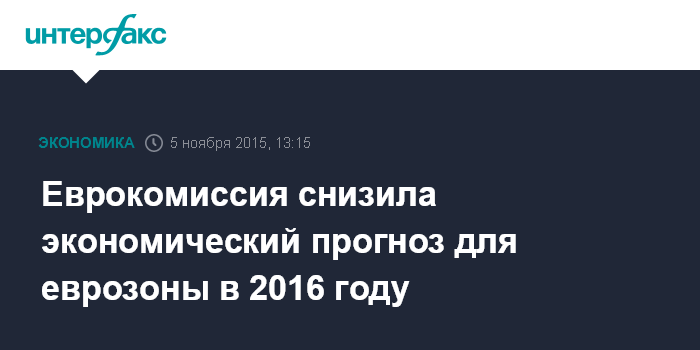 Москва. 5 ноября. INTERFAX.RU – Еврокомиссия в четверг повысила прогноз роста ВВП еврозоны на 2015 год с ожидавшихся в мае 1,5% до 1,6%, прогноз на 2016 год снижен с 1,9% до 1,8%, говорится в сообщении ЕК.