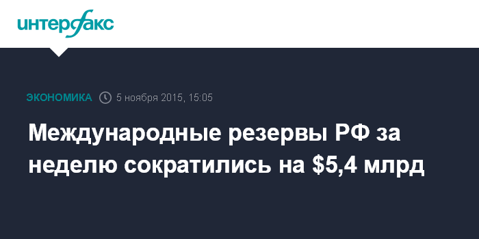 Москва. 5 ноября. INTERFAX.RU – Международные резервы России на 30 октября составили $369,2 млрд, сообщил Банк России. По состоянию на 23 октября международные резервы равнялась $374,6 млрд. Таким образом, за неделю они уменьшились на $5,4 млрд.