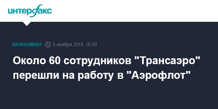 Около 60 сотрудников "Трансаэро" перешли на работу в "Аэрофлот"