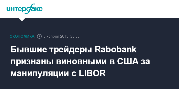 Бывшие трейдеры Rabobank признаны виновными в США за манипуляции с LIBOR