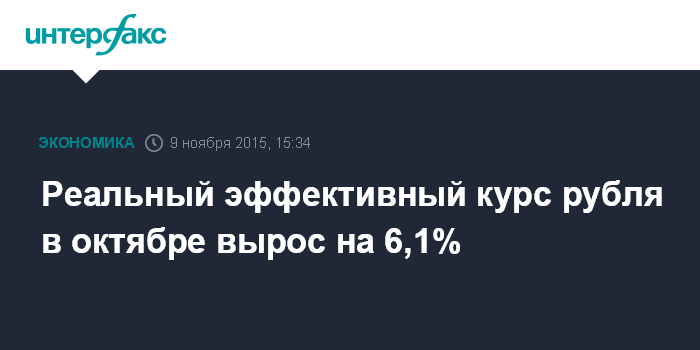 Москва. 9 ноября. INTERFAX.RU – Реальный эффективный курс рубля к корзине валют государств - основных торговых партнеров России в октябре 2015 года вырос на 6,1%, по предварительной оценке ЦБ РФ, опубликованной на его сайте.
