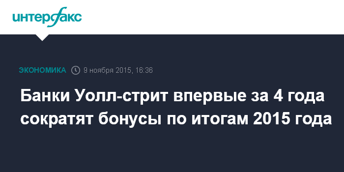 Банки Уолл-стрит впервые за 4 года сократят бонусы по итогам 2015 года