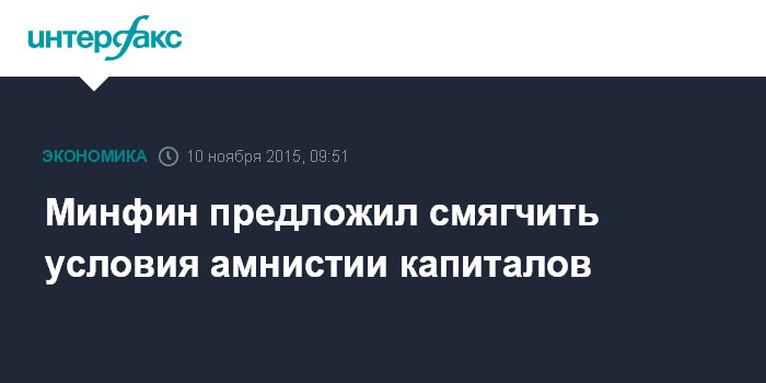 Москва. 10 ноября. INTERFAX.RU – Минфин подготовил предложения с целью активизировать амнистию капиталов, которая сейчас фактически терпит неудачу, сообщает газета "Коммерсантъ".