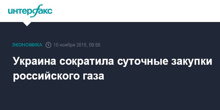 Москва. 10 ноября. INTERFAX.RU – "Нафтогаз Украины" сократил закупку российского газа до 10 млн куб. м газа в сутки, предоплаты "Газпрому" за газ при таком уровне отбора хватит на 4 дня, сообщил глава "Газпрома" Алексей Миллер журналистам.