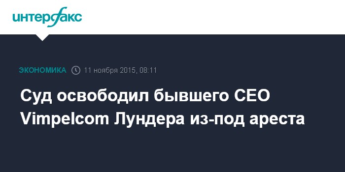 Москва. 11 ноября. INTERFAX.RU - Бывший глава телекоммуникационного холдинга Vimpelcom Ltd. Джо Лундер, арестованный 4 ноября в Осло, освобожден по решению апелляционного суда, сообщает агентство Bloomberg.