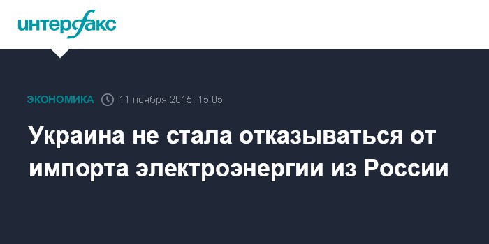 Москва. 11 ноября. INTERFAX.RU - Украина в среду получает электроэнергию из РФ мощностью около 800 МВт, сообщили агентству "Интерфакс-Украина" в пресс-службе НЭК "Укрэнерго".