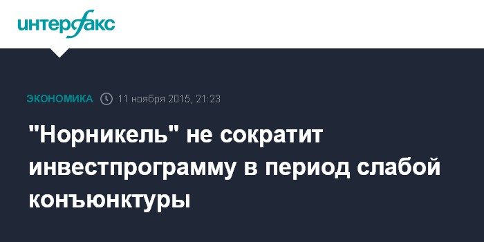 Москва. 11 ноября. INTERFAX.RU - ГМК "Норильский никель" не будет сокращать инвестиционную программу, несмотря на слабую рыночную конъюнктуру, сообщил глава компании Владимир Потанин на встрече с президентом РФ Владимиром Путиным.