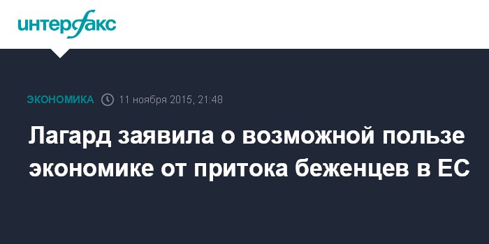 По мнению Лагард, "при правильном управлении" приток беженцев "может принести выгоду принимающим странам, так как тем самым повысится количество экономически активного населения", и это поможет решить проблему старения населения.