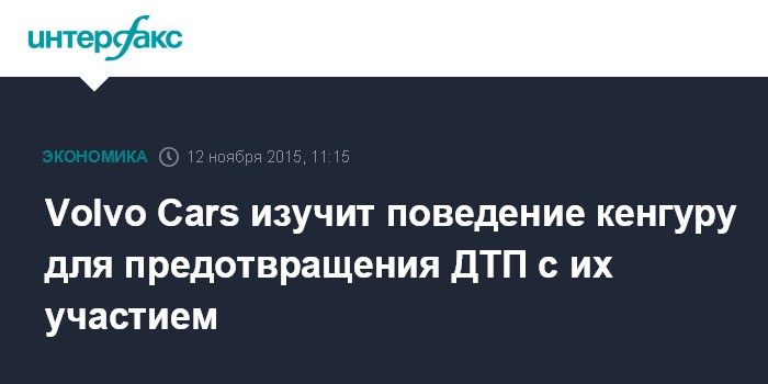 Москва. 12 ноября. INTERFAX.RU – Volvo Cars впервые в истории автомобилестроения разрабатывает систему безопасности для обнаружения на дороге кенгуру, что позволит справиться с одной из наиболее часто случающихся на дорогах Австралии проблем, сообщается в пресс-релизе концерна.