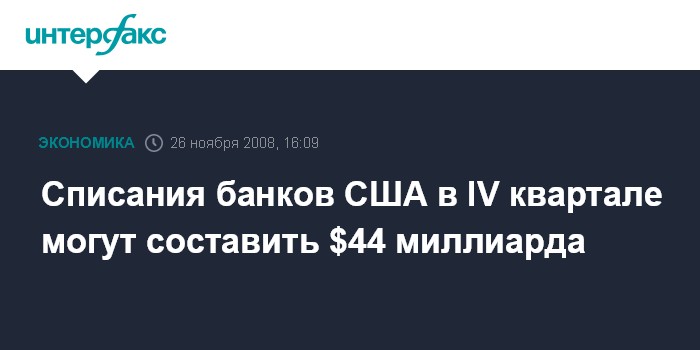 Списания банков США в IV квартале могут составить $44 миллиарда