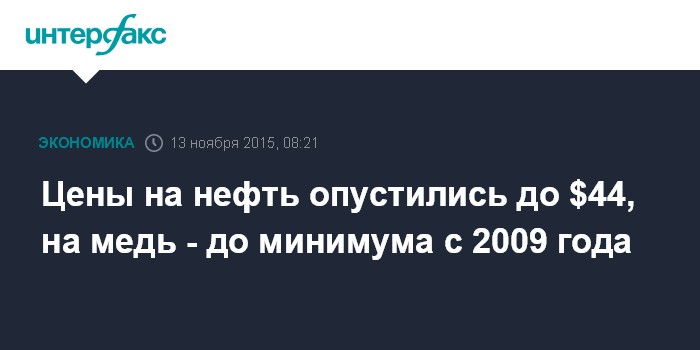 Цены на нефть опустились до $44, на медь - до минимума с 2009 года