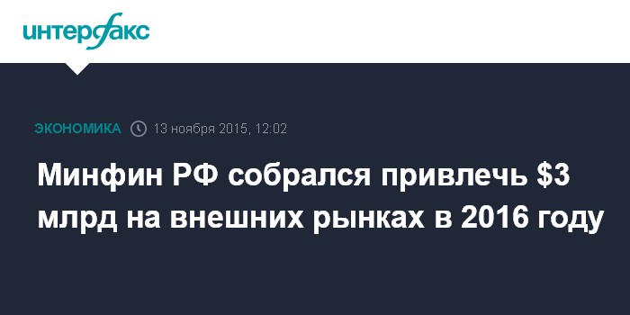 Минфин РФ собрался привлечь $3 млрд на внешних рынках в 2016 году