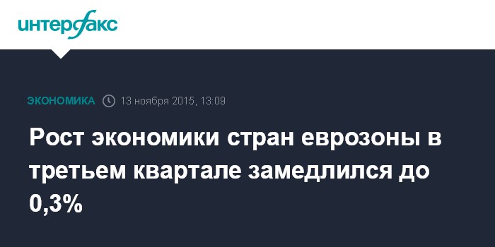 Рост экономики стран еврозоны в третьем квартале замедлился до 0,3%