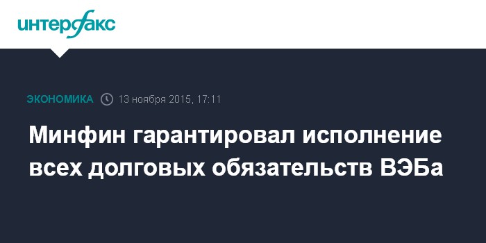 Минфин гарантировал исполнение всех долговых обязательств ВЭБа