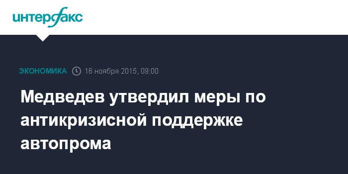 Москва. 16 ноября. INTERFAX.RU - Премьер-министр РФ Дмитрий Медведев подписал постановление, которое в соответствии с антикризисным планом правительства позволит обеспечить дополнительную загрузку производственных мощностей предприятий автомобильной промышленности и смежных отраслей.